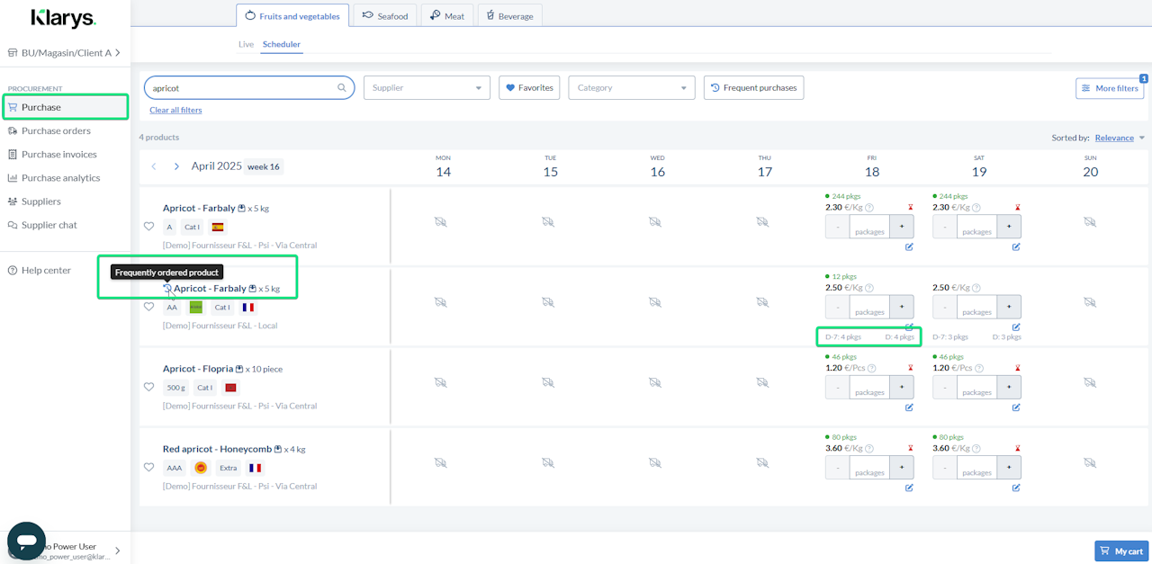 You can visualize quantities ordered for the day of previous week and the ongoing ordered quantity for D-day.