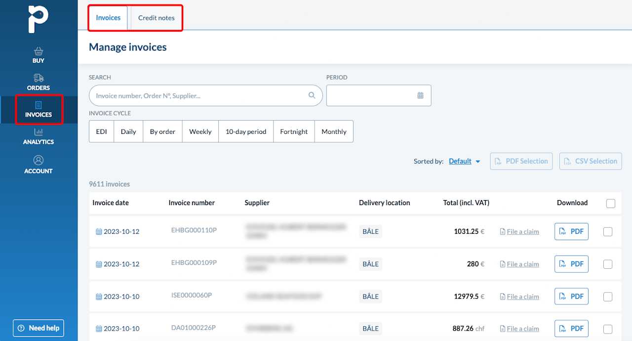 Invoices to find all the invoices generated by your suppliers